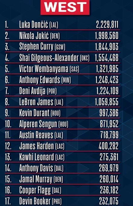 布克说道:“这是球迷投票。有些球队的市场非常大。有些球员来自不同的国家,背后有整个国家的球迷支持。我大致了解投票流程,但我打得比很多球员都好吗?当然。但投票机制并非如此。”